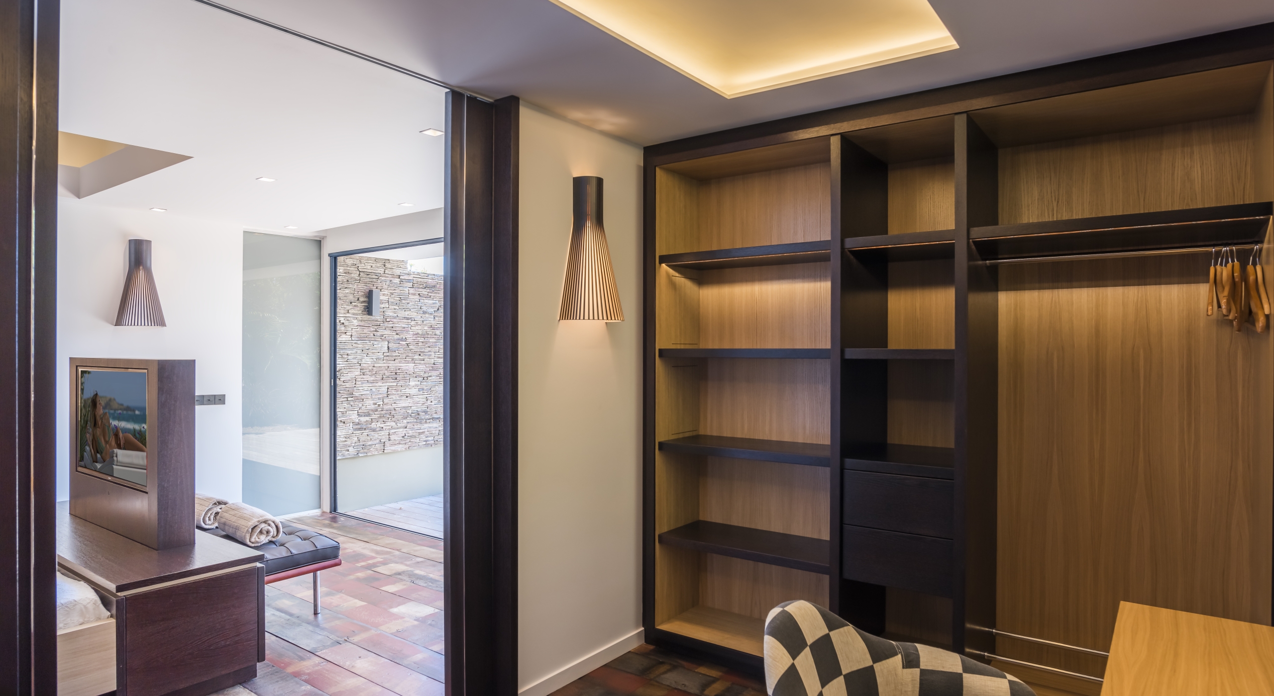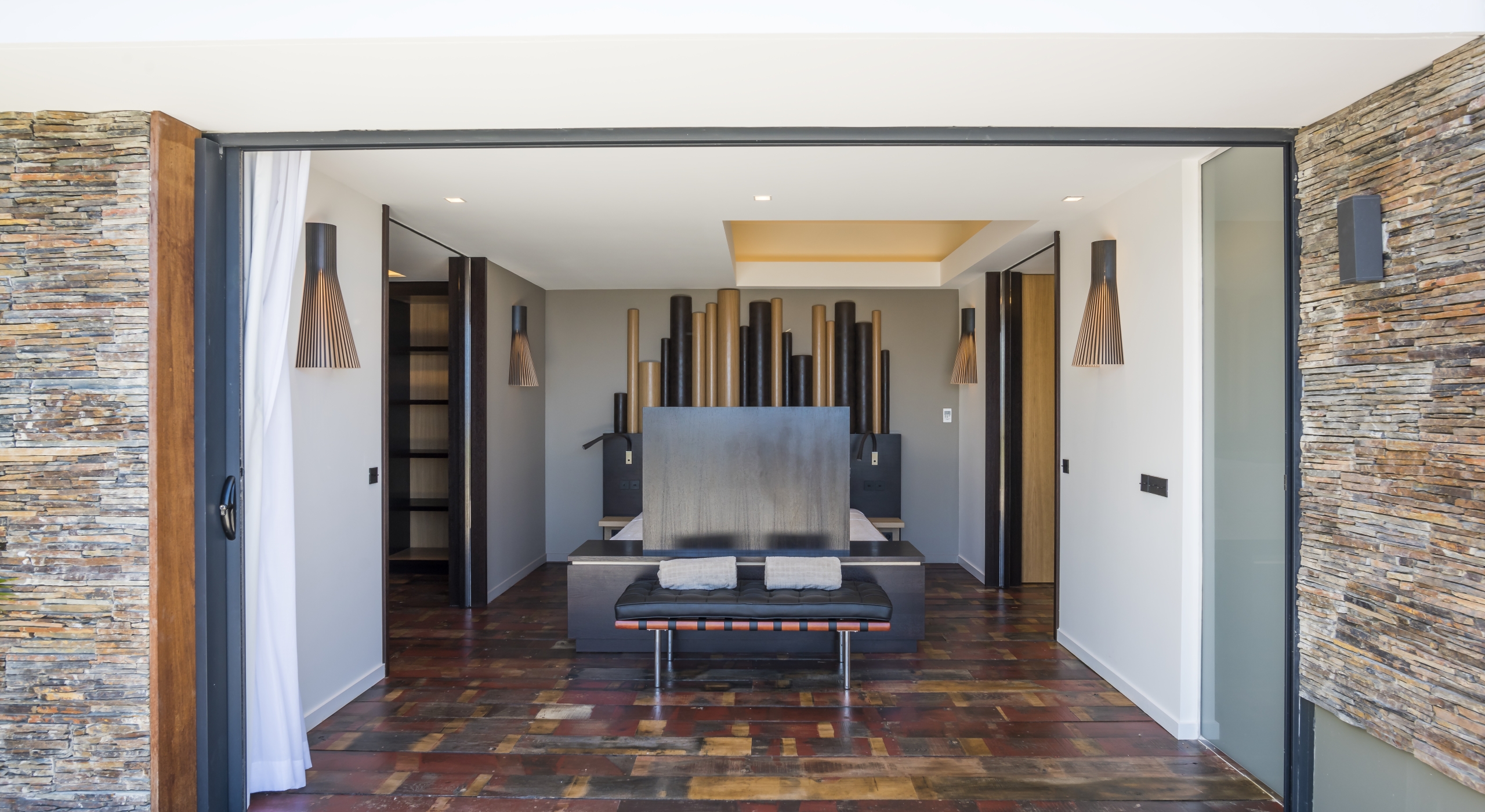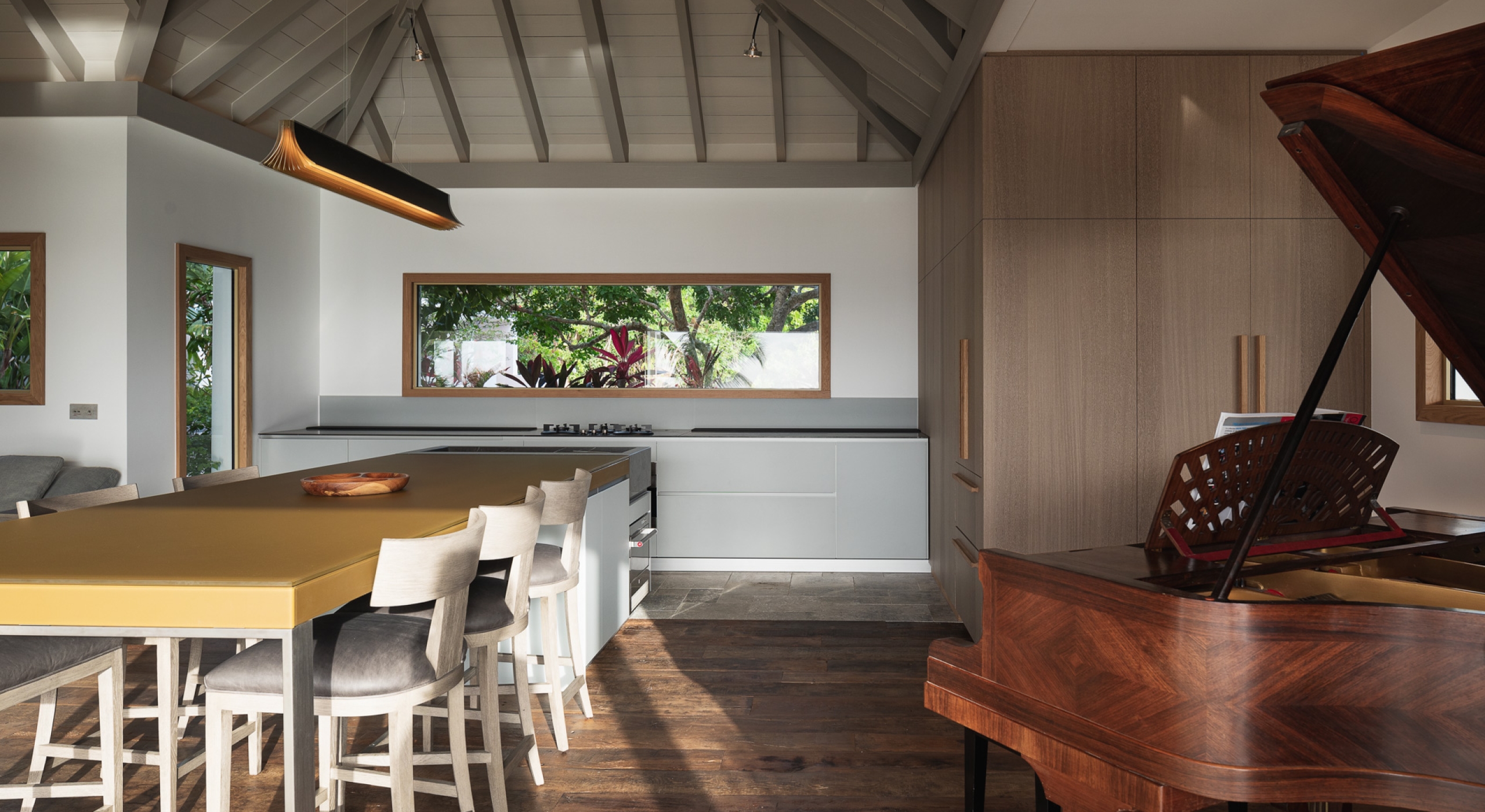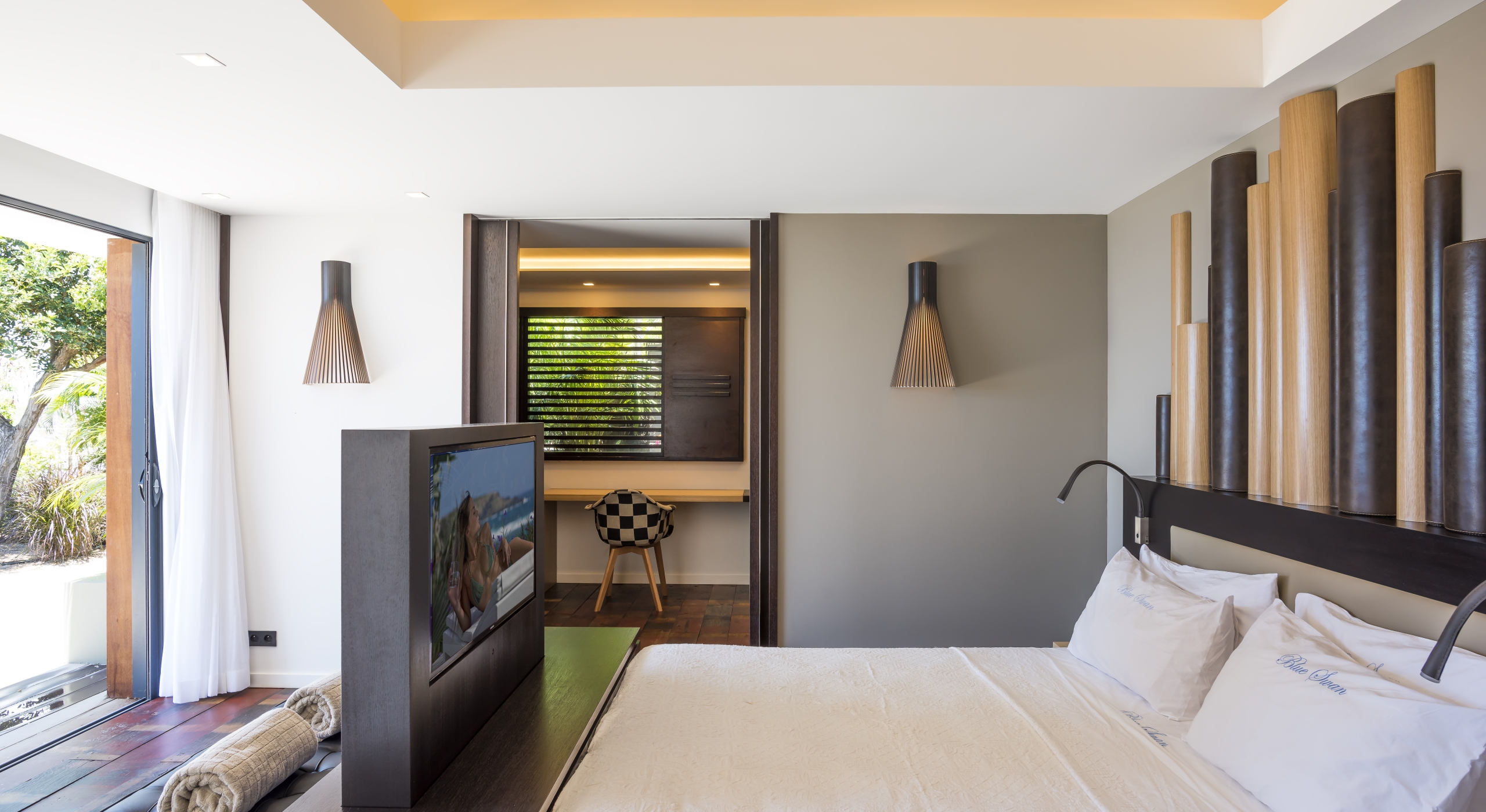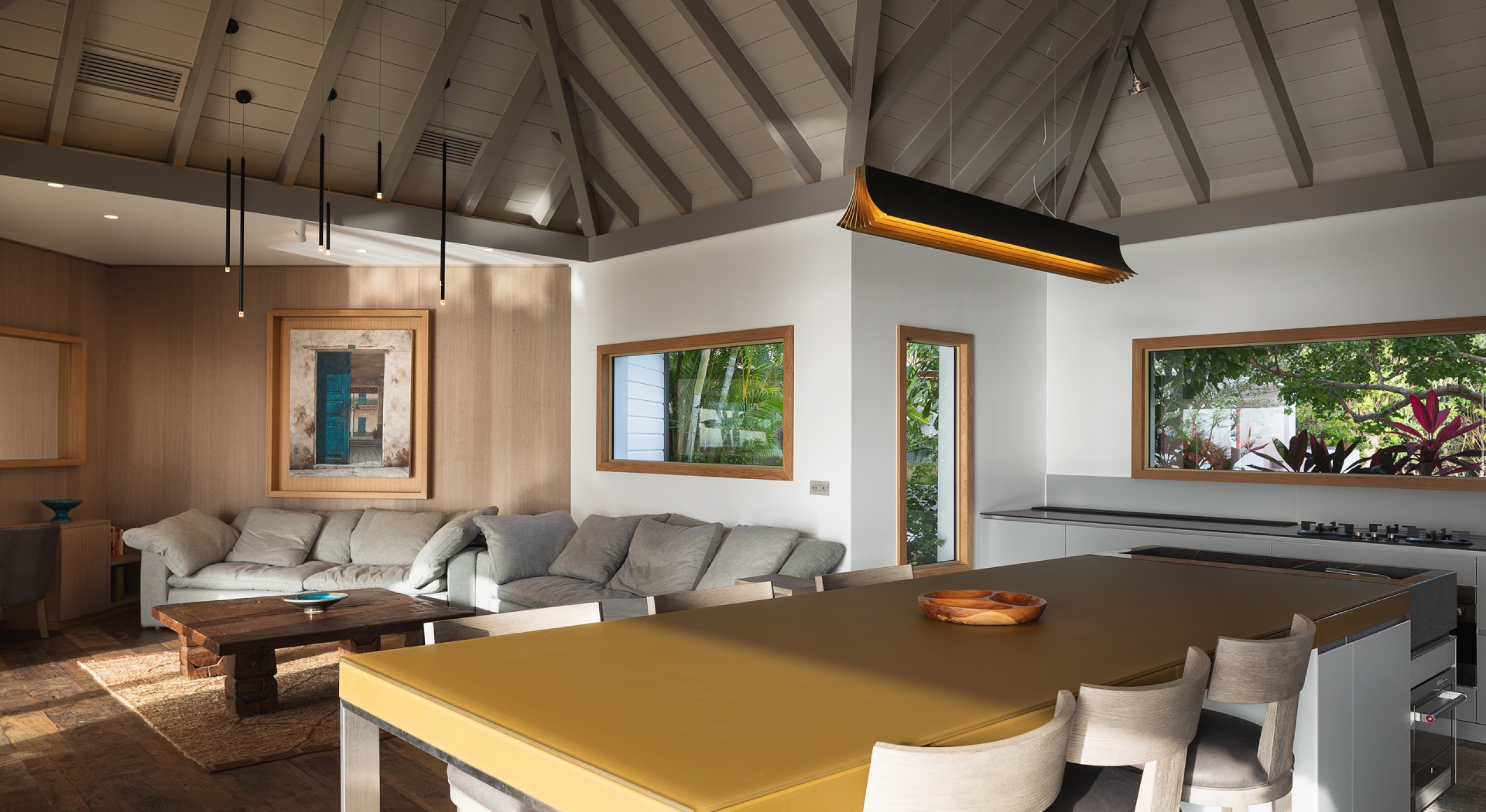 The large living room opens onto the spacious terrace and the beautiful pool overlooking the sea. The Japanese-inspired gazebo with its poolside bar is very popular.