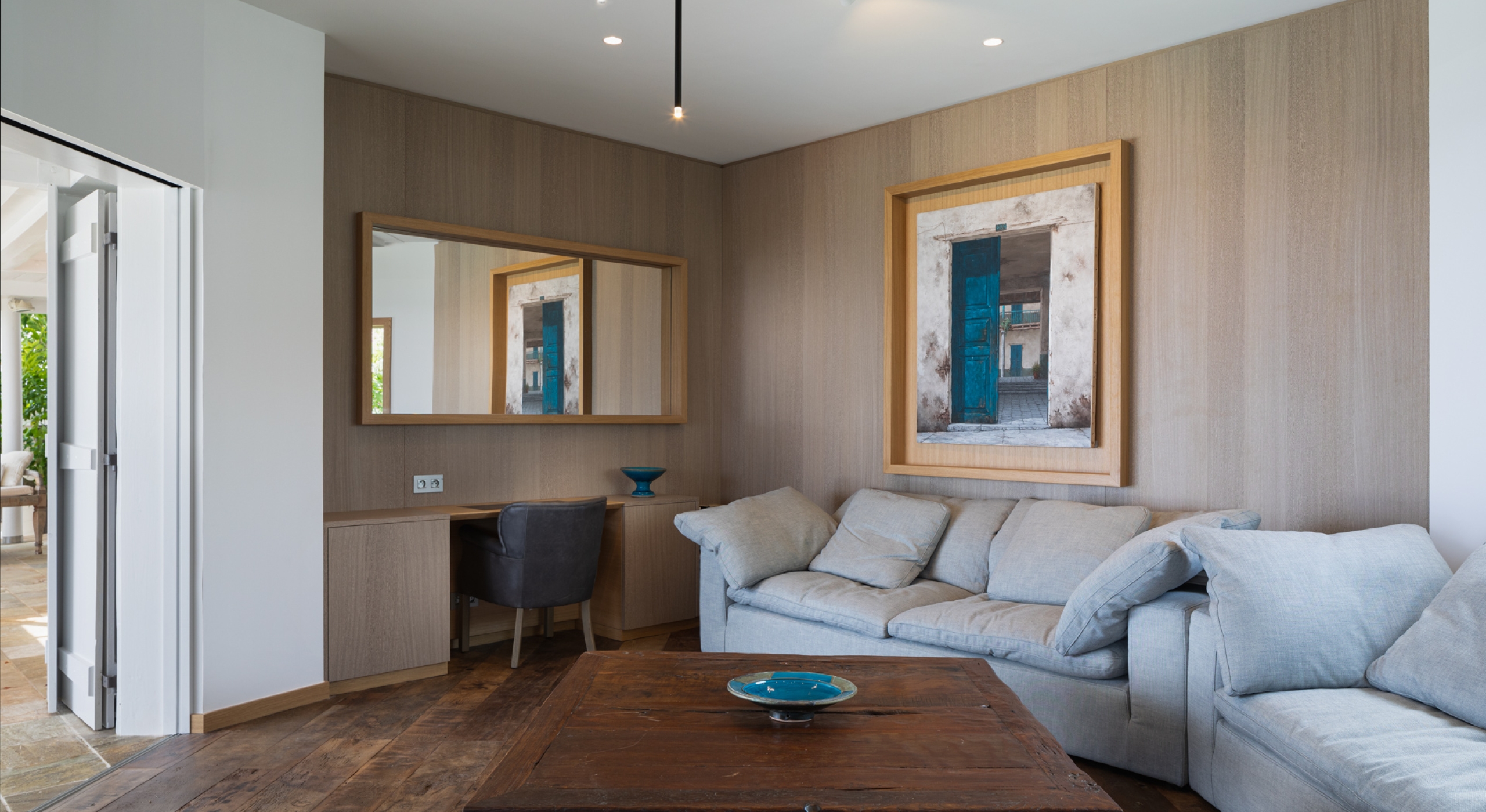 The villa has been recently renovated. It offers three large bedrooms each with its own bathroom.