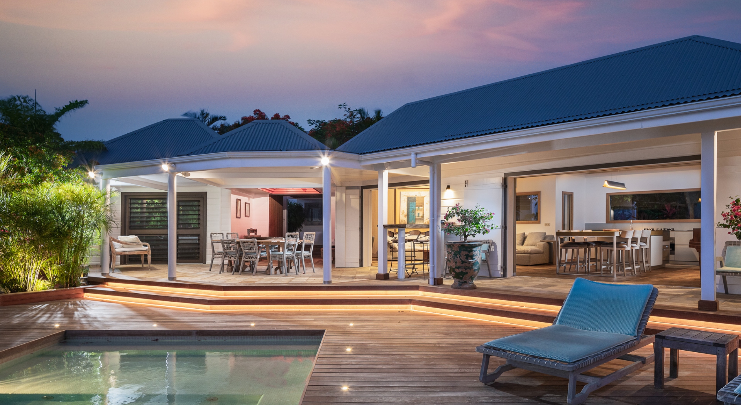 Blue Swan is ideally located on the heights of Lurin, just a few minutes from Gustavia, restaurants, shops, the beautiful beaches of Gouverneur, Shell Beach and Saint Jean. This spacious villa with its breathtaking panorama faces the setting sun.